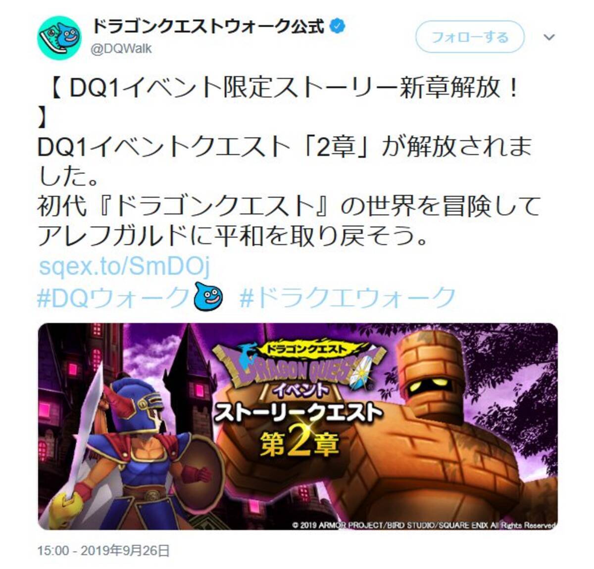 絶好調の位置情報ゲーム ドラゴンクエストウォーク 初代ドラクエコラボの第2章スタート ゴーレムも出現 19年9月26日 エキサイトニュース